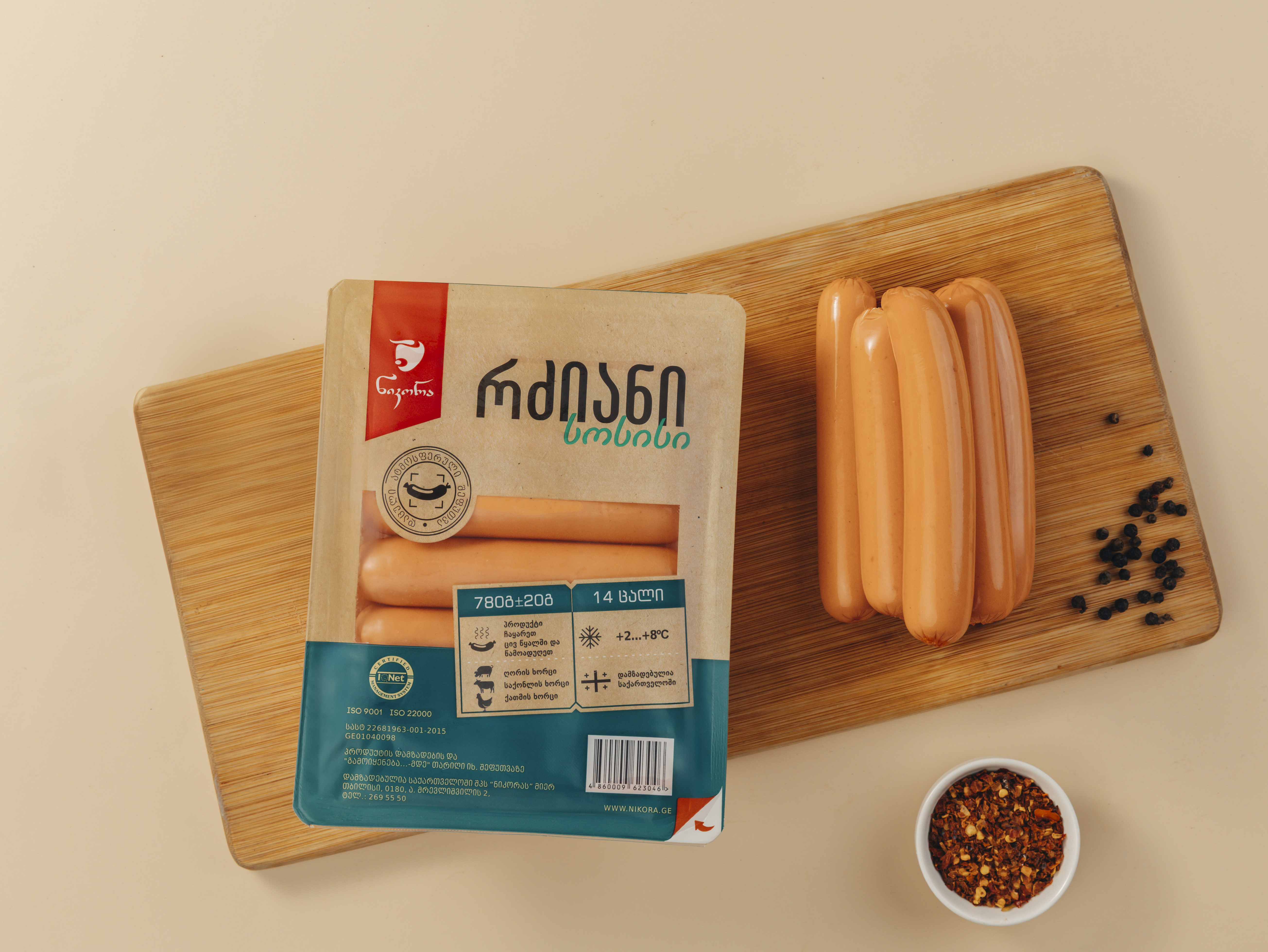 [ღორის ხორცი, ქათმის ხორცი, საქონლის ხორცი] – 57%, წყალი - 22%, ნატურალური ცხოველური ცილა, სახამებელი, მარილი, შეფერილობის ფიქსატორი - ნატრიუმის ნიტრიტი; მალტოდექსტრინი, საკვები უჯრედისი, სანელებლები, სანელებლების ექსტრაქტები, შაქარი, ძმარი, საფუარის ექსტრაქტი, რძის ცილა - 0.2%,